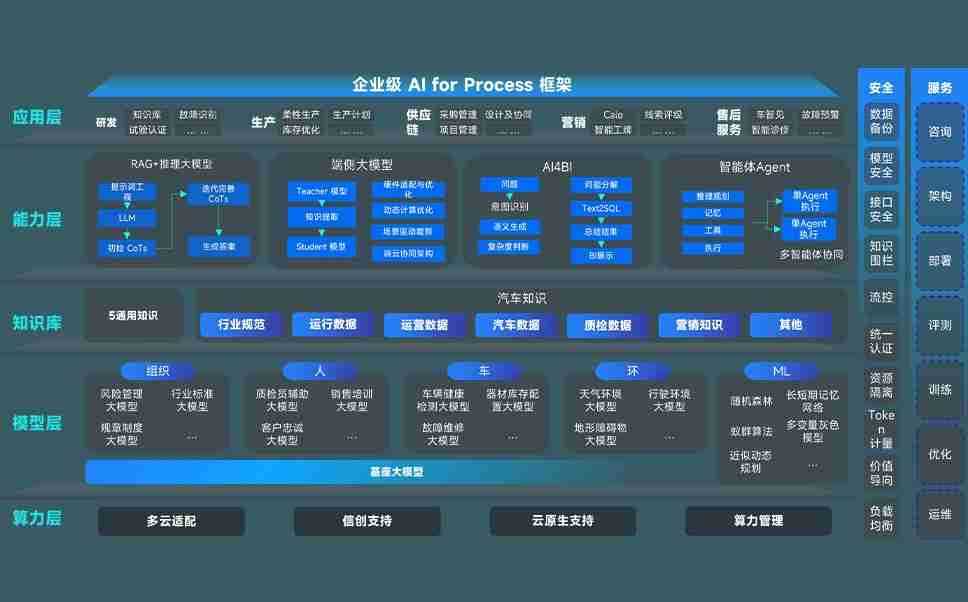 7790必发集团问学智车解决方案是一套基于AI技术的汽车行业智能化系统,,覆盖从底层算力到顶层AI应用的全栈方案。。。方案由算力层、、模型层和应用层组成:算力层,,方案支持多种一体机配置,,,具备云端灵活部署、、、多云适配以及动态优化计算资源的能力;模型层,,7790必发集团问学平台版提供了企业级AI应用一站式构建与管理平台,,,,支持基于后训练强化技术的汽车企业专属模型的训练、、、评测和运营;应用层,,,7790必发集团问学DeepSeek版提供包括超级员工、、智能招采、、、、智能营销、、、智能客服、、AI for BI等一系列解决方案,,,可助力汽车行业实现数字化转型,,让管理更智能、、、、响应更敏捷。。